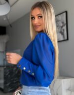 Bluzka ta została wykonana z wysokiej jakości materiału szyfonowego, który jest lekki, przewiewny i nadaje ubraniu wyjątkowego uroku. Szyfonowe rękawy dodają bluzce lekkości i delikatności, tworząc efekt unoszenia się materiału, co nadaje jej romantycznego charakteru.