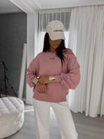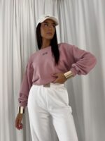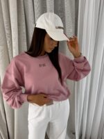 Bluza o swobodnym kroju, wykonana z miękkiej bawełny. Zakładana przez głowę, długie rękawy zapewniają komfort noszenia. Idealna na co dzień – do jeansów, dresów czy szortów. Minimalistyczny napis „BY ME” umieszczony na środku przy dekolcie.