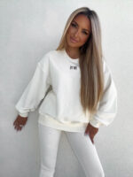 Bluza o swobodnym kroju, wykonana z miękkiej bawełny. Zakładana przez głowę, długie rękawy zapewniają komfort noszenia. Idealna na co dzień – do jeansów, dresów czy szortów. Minimalistyczny napis „BY ME” umieszczony na środku przy dekolcie.