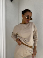 Bluza o prostym, luźnym kroju, z długim rękawem. Rękawy posiadają delikatne “szczypania”. Wkładana przez głowę. Na środku logowanie.