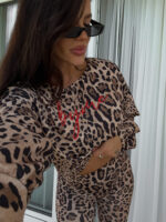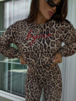 Bluza dresowa LOGO print pantera – beżowo-czarna