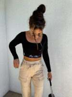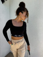 Top na długi rękaw. Efektownym dodatkiem są logowane gumy.