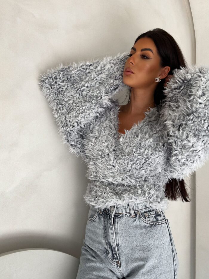 Bluzka Kaira wiązana, którą można nosić dekolt tył/przód.