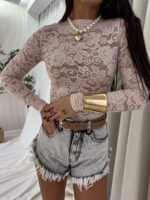 Bluzka Sabrina o dopasowanym kroju sprawdzi się jako baza do wielu różnorodnych stylizacji. Charakteryzuje się rękawem typu long sleeve. Delikatna stójka.
