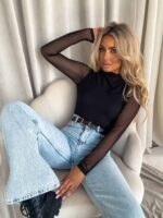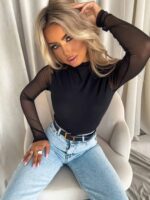 Bluzka SKIN o dopasowanym kroju sprawdzi się jako baza do wielu różnorodnych stylizacji. Wykonana z bardzo delikatnej miłej w dotyku siateczki. Przód i tył z delikatną podszewką, dzięki której nic nie prześwituje. Charakteryzuje się rękawem typu long sleeve.  Jej krój zagwarantuje komfort i wygodę noszenia. Delikatna stójka.