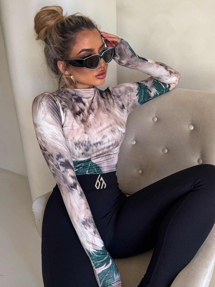 Bluzka SKIN o dopasowanym kroju sprawdzi się jako baza do wielu różnorodnych stylizacji. Przód i tył z delikatną podszewką, dzięki której nic nie prześwituje. Charakteryzuje się rękawem typu long sleeve. Jej krój zagwarantuje komfort i wygodę noszenia. Delikatna stójka.