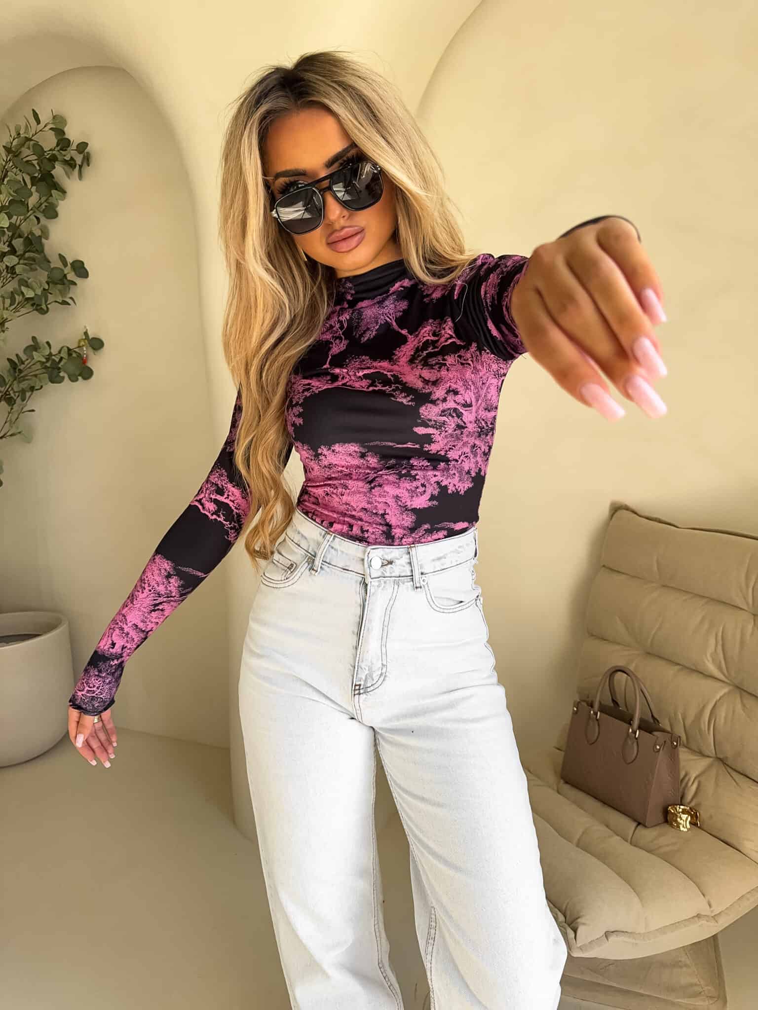 Bluzka SKIN o dopasowanym kroju sprawdzi się jako baza do wielu różnorodnych stylizacji. Przód i tył z delikatną podszewką, dzięki której nic nie prześwituje. Charakteryzuje się rękawem typu long sleeve. Jej krój zagwarantuje komfort i wygodę noszenia. Delikatna stójka.