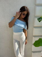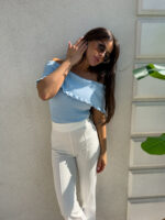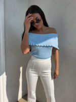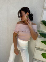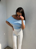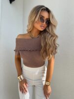 Bluzka ROZENEK to niezwykłe połączenie nietuzinkowego designu, wyjątkowej jakości przędzy z luksusowym dotykiem kaszmiru. Wykonany z dbałością o detale prążkowany splot nadaje mu wyrafinowania i przyciąga uwagę. Uszyty z najwyższej jakości materiału, dzięki czemu jest miękki i niezwykle przyjemny w dotyku. Efektowny wywinięty dekolt, wykończony falbanką oraz nadaje mu kobiecego uroku i subtelności. Świetnie skomponuje się zarówno z eleganckimi spodniami, jak i jeansami, czy spódnicami, co sprawia, że jest idealnym wyborem na różne okazje. Idealny dla kobiet ceniących sobie elegancję, wygodę, jakość i oryginalny design.
