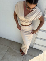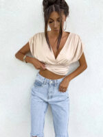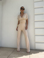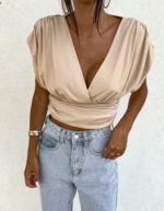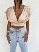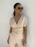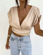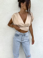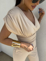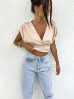 Bluzka o krótkim kroju, dekolt V. Delikatny rękawek z marszczeniami na ramionach. Pięknie podkreśla biust, materiał idealnie pasujący do spodni SUMMER LIGHT. Dzięki temu można stworzyć cudowny zestaw.