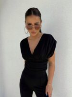Bluzka o krótkim kroju, dekolt V. Delikatny rękawek z marszczeniami na ramionach. Pięknie podkreśla biust, materiał idealnie pasujący do spodni SUMMER LIGHT. Dzięki temu można stworzyć cudowny zestaw.