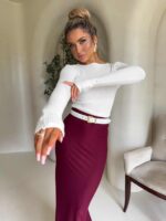 Stylowa i kobieca bluzka wykonana z elastycznego, prążkowanego materiału, który doskonale dopasowuje się do sylwetki, podkreślając jej kształt. Model z długimi rękawami oraz dekoltem w łódkę, który subtelnie eksponuje szyję i obojczyki. Miękka i rozciągliwa tkanina zapewnia komfort noszenia oraz swobodę ruchów.
