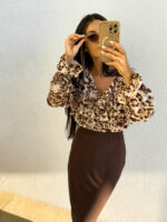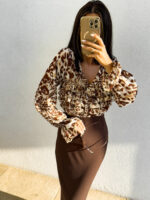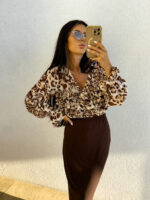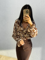 Bluzka Women zapinana na guziczki. Posiada piękne, efektowne rękawy. Na przodzie bluzki są falbanki. Dekolt w serek.
