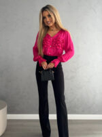Bluzka Women zapinana na guziczki. Posiada piękne, efektowne rękawy. Na przodzie bluzki są falbanki. Dekolt w serek.