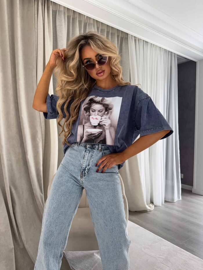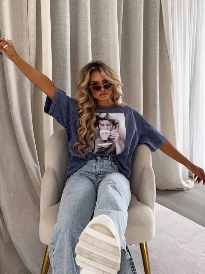 Dekatyzowany t-shirt ROLLER – granatowy