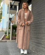 Długie, stylowe futro o eleganckim kroju. Model posiada obszerny kołnierz, który dodaje szyku i zapewnia dodatkowe ciepło. Zapinane na guziki, co nadaje mu minimalistyczny wygląd i ułatwia zakładanie. Boczne kieszenie zapewniają praktyczność, a gładka podszewka zwiększa komfort noszenia. Idealne jako uzupełnienie stylizacji na chłodniejsze dni.