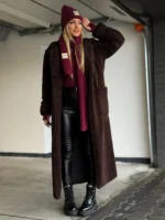 Długie, stylowe futro o eleganckim kroju. Model posiada obszerny kołnierz, który dodaje szyku i zapewnia dodatkowe ciepło. Zapinane na guziki, co nadaje mu minimalistyczny wygląd i ułatwia zakładanie. Boczne kieszenie zapewniają praktyczność, a gładka podszewka zwiększa komfort noszenia. Idealne jako uzupełnienie stylizacji na chłodniejsze dni.