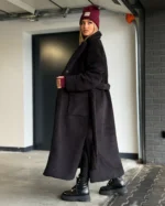 Długie, stylowe futro o eleganckim kroju. Model posiada obszerny kołnierz, który dodaje szyku i zapewnia dodatkowe ciepło. Zapinane na guziki, co nadaje mu minimalistyczny wygląd i ułatwia zakładanie. Boczne kieszenie zapewniają praktyczność, a gładka podszewka zwiększa komfort noszenia. Idealne jako uzupełnienie stylizacji na chłodniejsze dni.