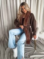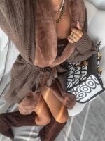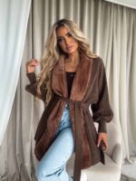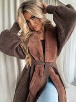 Kardigan DREAM to połączenie klasyki i nowoczesnych detali. Wyróżnia się kontrastem tekstur – tradycyjna dzianina została zestawiona z miękkim futerkiem. Luźny, oversize’owy krój zapewnia swobodę i komfort noszenia, a bufiaste rękawy zakończone są elastycznymi ściągaczami. Wiązanie w pasie – wykonane z tego samego materiału – pozwala dopasować kardigan do sylwetki, podkreślając talię.