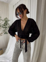 Ażurowe kimono to stylowy i lekki element garderoby, który łączy w sobie elegancję z komfortem. Wykonane z przewiewnego materiału, posiada subtelną ażurową strukturę, która nadaje mu unikalnego charakteru. Kimono jest przewiązywane, co pozwala na dopasowanie go do sylwetki oraz dodaje mu swobody w stylizacji. Można go nosić zarówno z przodu, jak i z tyłu, co daje szerokie możliwości noszenia i dostosowania do różnych stylizacji. Długi rękaw zakończony gumką sprawia, że kimono jest wygodne i dobrze trzyma się na ramionach, dodając całości eleganckiego wyglądu. Idealne do noszenia na co dzień lub na bardziej formalne okazje.
