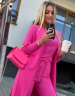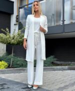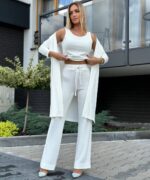 Zestaw trzech elementów, łączący elegancję z wygodą, podkreślając zarazem sylwetkę. Wykonany z wysokiej jakości materiałów, ten zestaw zapewnia nie tylko stylowy wygląd, ale również komfort noszenia. Doskonały wybór dla tych, którzy pragną czuć się pewnie i stylowo w każdej sytuacji.”