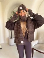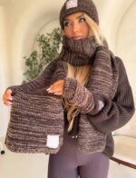 Komplet Alaska składający się z ciepłej czapki, szalika i rękawiczek bez palców.