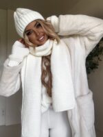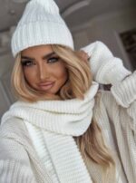 Komplet Alaska składający się z ciepłej czapki, szalika i rękawiczek bez palców.