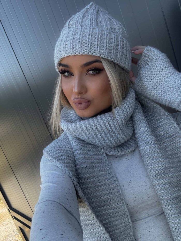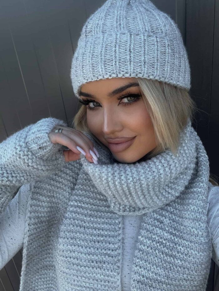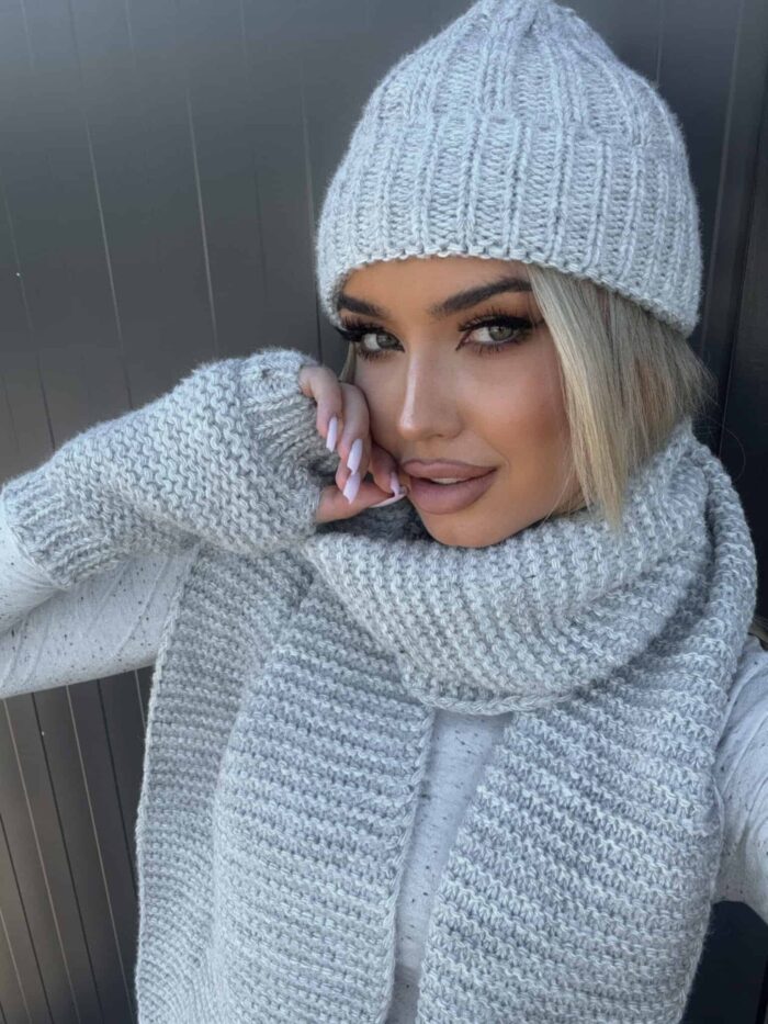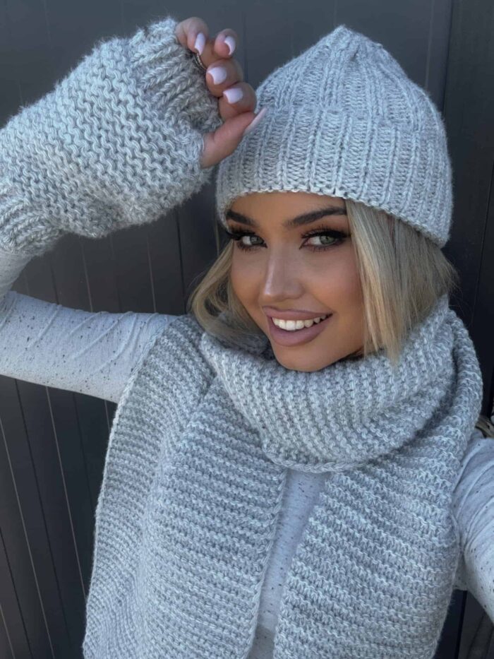 Komplet Alaska składający się z ciepłej czapki, szalika i rękawiczek bez palców.