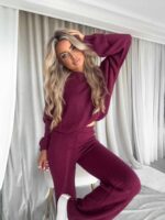 Komplet ANGEL wykonany z najwyższej jakości materiału, bardzo milutkiego. Bluza o prostym, luźnym kroju, z długim rękawem zakończonym gumą. Szerokie spodnie z gumką w pasie.