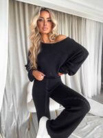 Komplet ANGEL wykonany z najwyższej jakości materiału, bardzo milutkiego. Bluza o prostym, luźnym kroju, z długim rękawem zakończonym gumą. Szerokie spodnie z gumką w pasie.