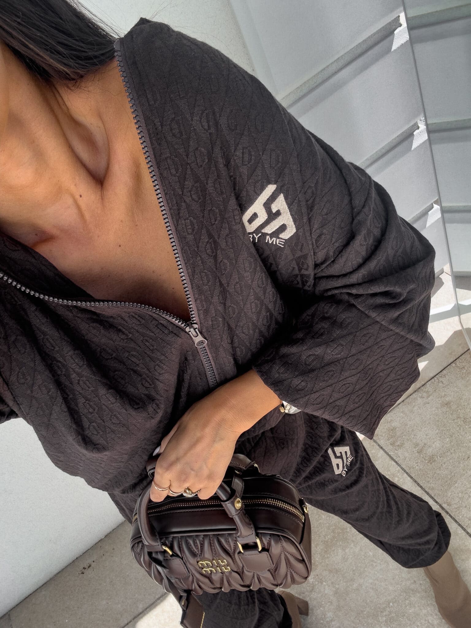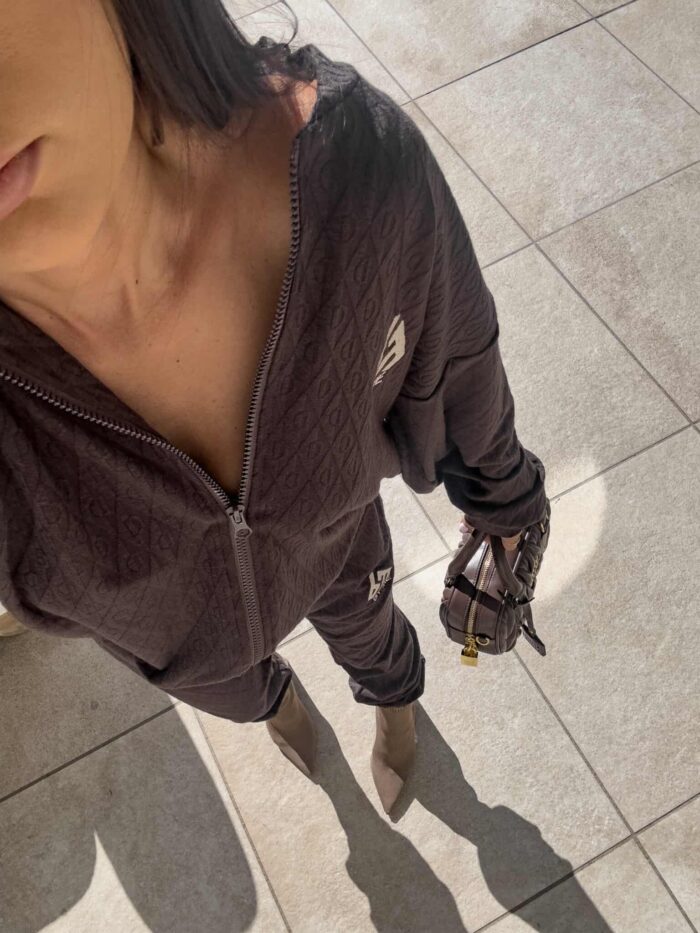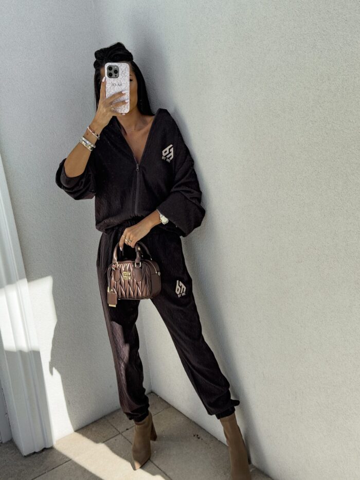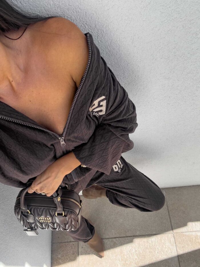 Komplet Artemis składa się z rozpinanej bluzy oraz spodni z elastyczną gumką w pasie i nogawkach, co zapewnia idealne dopasowanie i swobodę ruchów. Bluza wyposażona jest w praktyczny zamek błyskawiczny, a spodnie mają dwie funkcjonalne kieszenie, które pomieszczą niezbędne drobiazgi. Całość wyróżniają subtelne haftowane logowania.