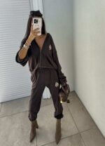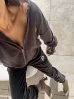 Komplet Artemis składa się z rozpinanej bluzy oraz spodni z elastyczną gumką w pasie i nogawkach, co zapewnia idealne dopasowanie i swobodę ruchów. Bluza wyposażona jest w praktyczny zamek błyskawiczny, a spodnie mają dwie funkcjonalne kieszenie, które pomieszczą niezbędne drobiazgi. Całość wyróżniają subtelne haftowane logowania.
