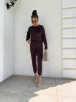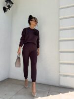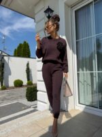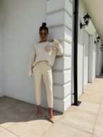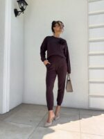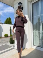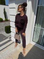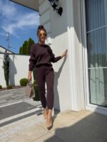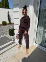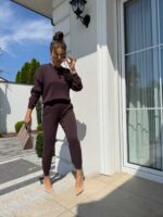 Komplet Delani Long składający się z bluzy sweterkowe z długim rękawem oraz długich spodni z gumką w pasie. Kwiat jest odpinany.