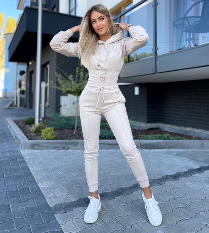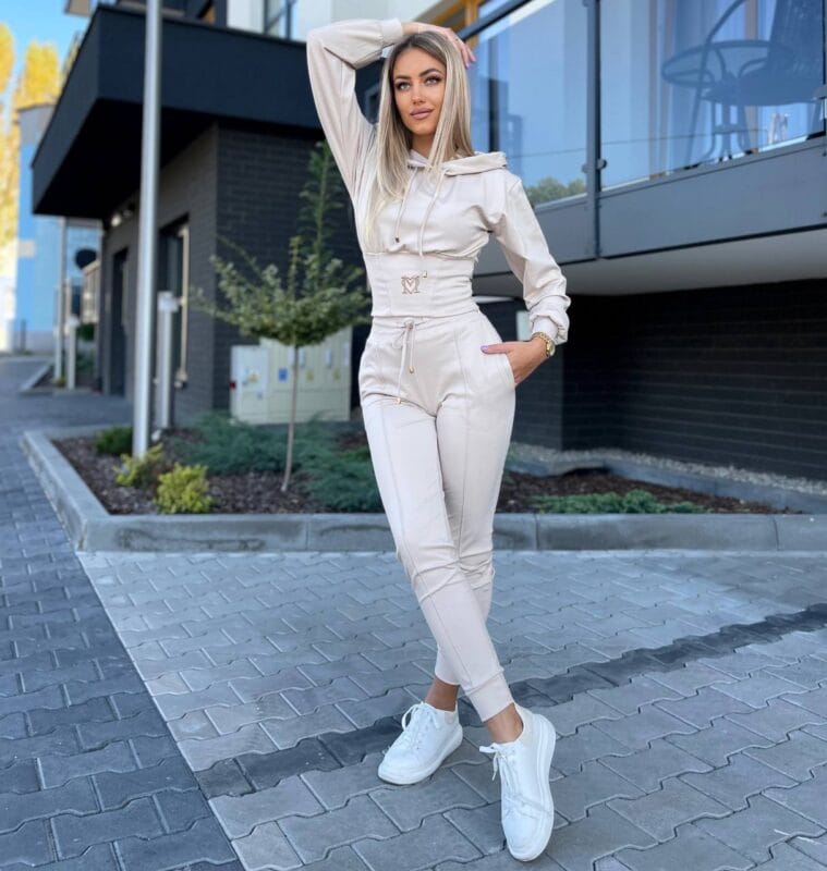 Komplet Dirty składający się z bluzki na długi rękaw i legginsów z gumką w pasie, które posiadają efektowne wstawki. Połączenie dwóch kolorów tworzy fantastyczny look. Materiał jest bardzo ciągliwy. Bardzo ładnie wyszczupla.