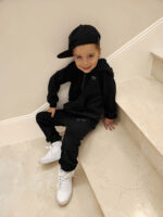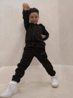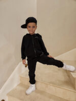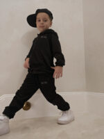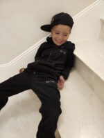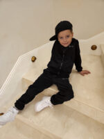 Komplet stworzony z myślą o naszych najmłodszych. Składa się z bluzy zapinanej na suwak z długim rękawem z kapturem oraz długich spodni. Wykonany z prążkowanego materiału welurowego. Na lewej stronie bluzy logowany napis BY ME.