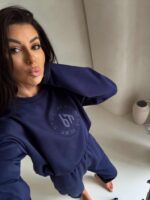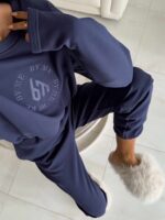 Komplet Louis składający się z bluzy o luźnym kroju, z długim rękawem z troczkiem regulującym długość oraz logowaniem na środku. Spodnie mają gumki na nogawkach i w pasie oraz dwie wbudowane kieszenie.