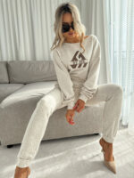 Komplet Luxit wykonany z najwyższej jakości materiału. Bluza o prostym kroju, z długim rękawem, z logowaniem na środku. Spodnie z gumką w pasie, z dwoma wbudowanymi kieszeniami.