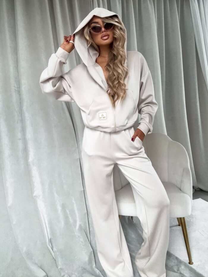Wygodny komplet dresowy składający się z bluzy i spodni. Bluza zapinana na zamek, z długimi rękawami i lekkim, oversize’owym krojem. Wyposażona w praktyczny kaptur oraz logowaną naszywkę na przodzie, która dodaje charakteru i podkreśla stylowy detal.