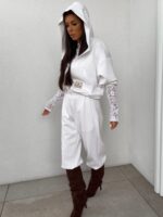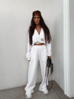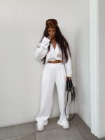 Wygodny komplet dresowy składający się z bluzy i spodni. Bluza zapinana na zamek, z długimi rękawami i lekkim, oversize’owym krojem. Wyposażona w praktyczny kaptur oraz logowaną naszywkę na przodzie, która dodaje charakteru i podkreśla stylowy detal.