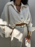 Koszula Over charakteryzuje się luźnym krojem oraz zapięciem regulowanym na guziczki.