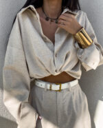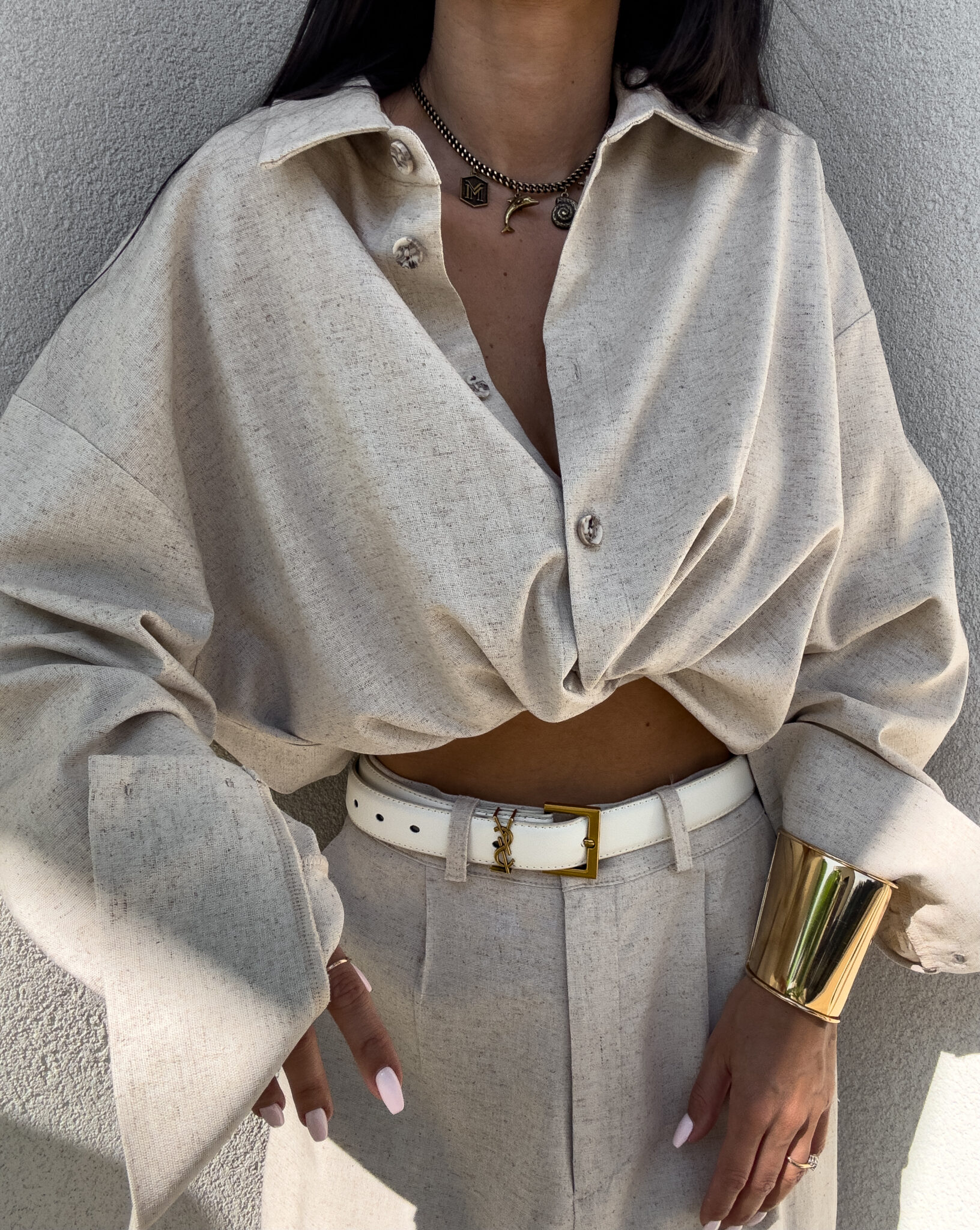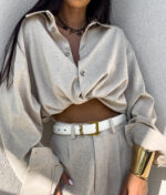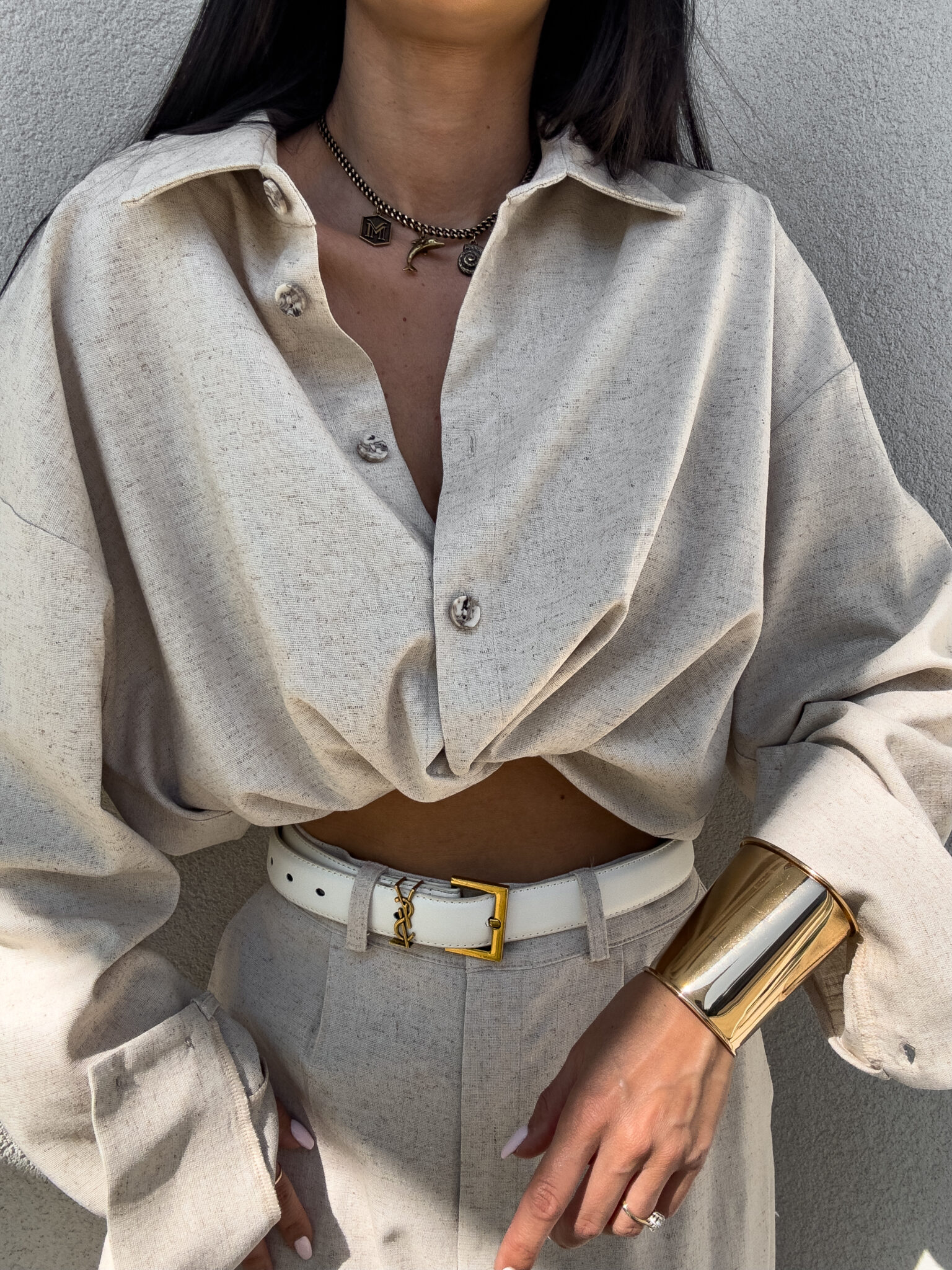 Koszula Over charakteryzuje się luźnym krojem oraz zapięciem regulowanym na guziczki. Materiał lekko gryzący.