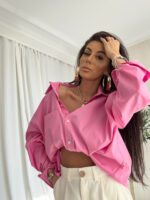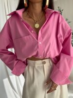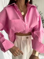 Koszula Over charakteryzuje się luźnym krojem oraz zapięciem regulowanym na guziczki oaz efektowną kieszenią z jednej strony.