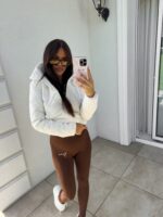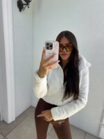 Zapinana na zamek błyskawiczny. Model wyposażony w stójkę, kieszenie oraz ściągacz u dołu, który umożliwia regulację długości i dopasowanie do sylwetki. Logowanie na plecach.