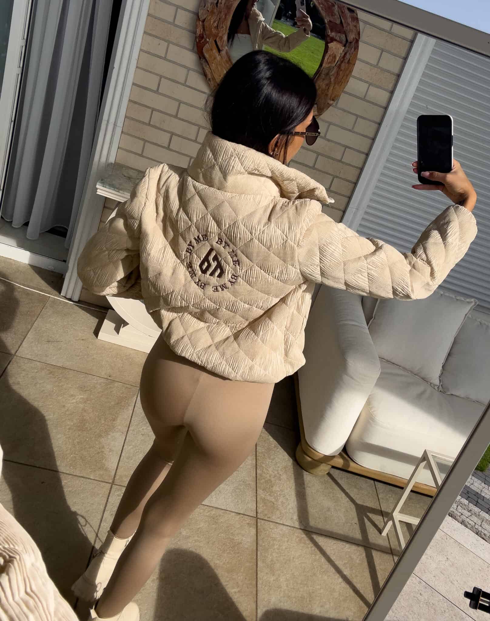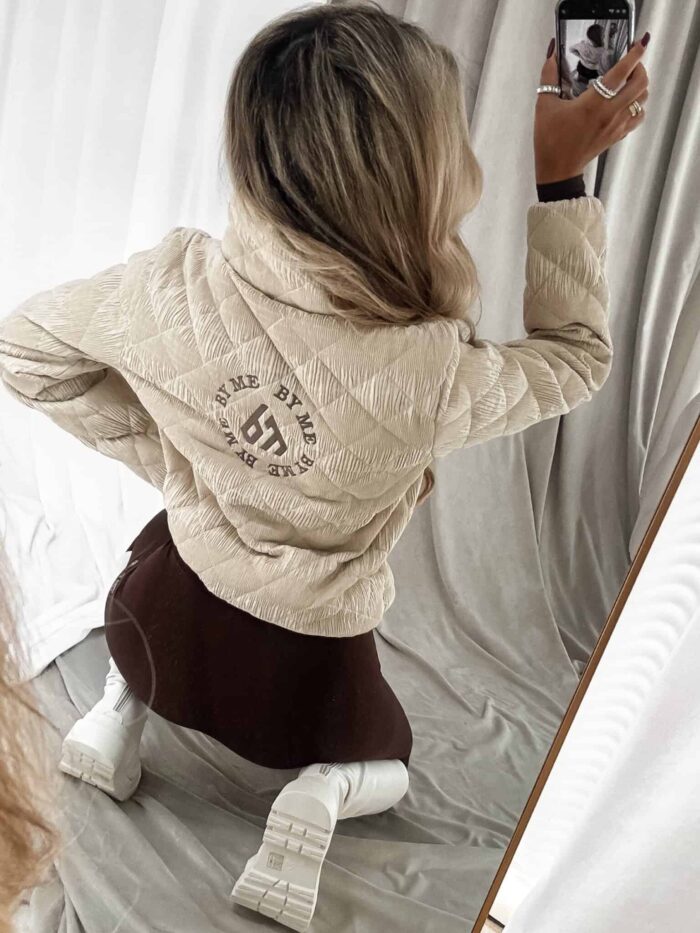 Zapinana na zamek błyskawiczny. Model wyposażony w stójkę, kieszenie oraz ściągacz u dołu, który umożliwia regulację długości i dopasowanie do sylwetki. Logowanie na plecach.
