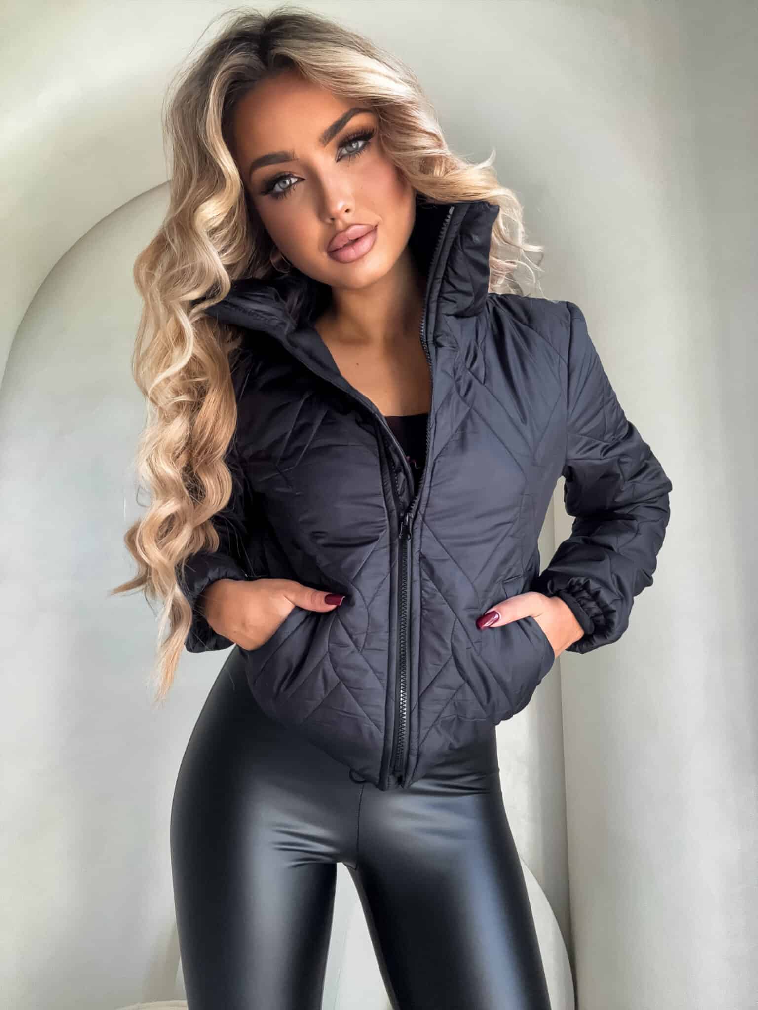 Zapinana na zamek błyskawiczny. Model wyposażony w stójkę, kieszenie oraz ściągacz u dołu, który umożliwia regulację długości i dopasowanie do sylwetki. Logowanie na plecach.