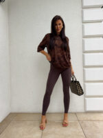 Legginsy wykonane z bardzo ciągliwego materiału, zapewniającego wyjątkowy komfort i swobodę ruchów. Charakteryzują się nowoczesnym designem, z logo umieszczonym po lewej stronie, oraz z tyłu, na prawej stronie. Idealne do aktywności fizycznej oraz codziennego użytku, łączą funkcjonalność z modnym wyglądem.