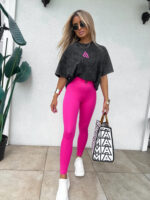 Legginsy Gym z bardzo ciągliwego materiału, logowany pas.