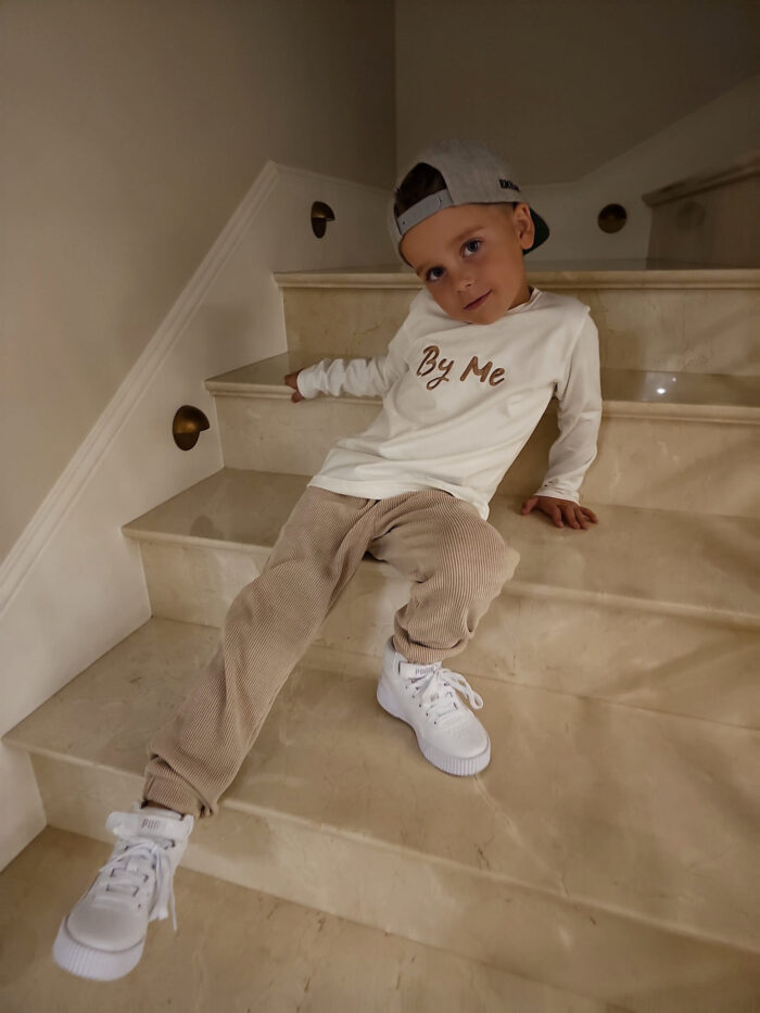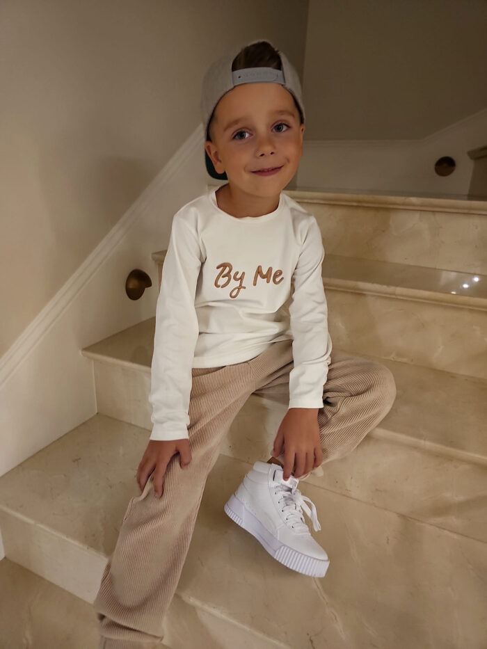 Longsleeve Child to tshirt na długi rękaw. Charakteryzuje się logowanym napisem „By Me”. Stworzony specjalnie dla chłopców i dziewczynek.