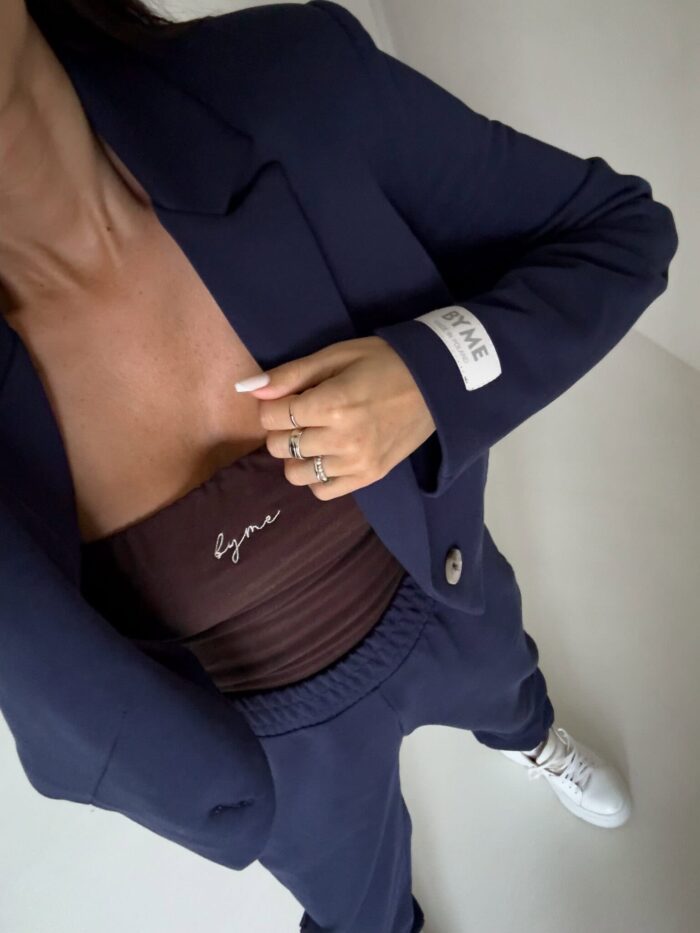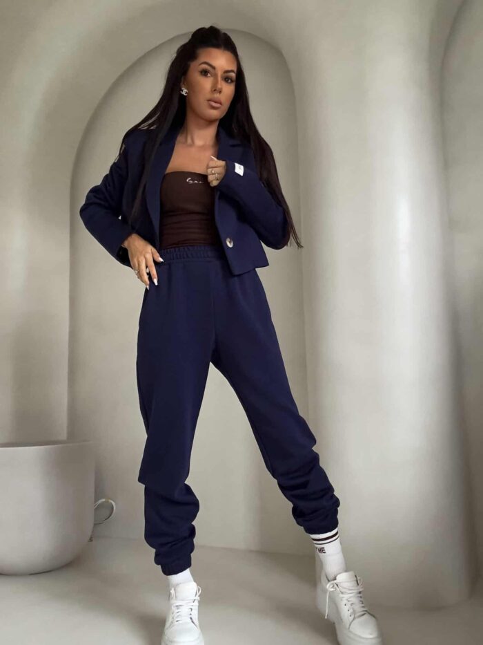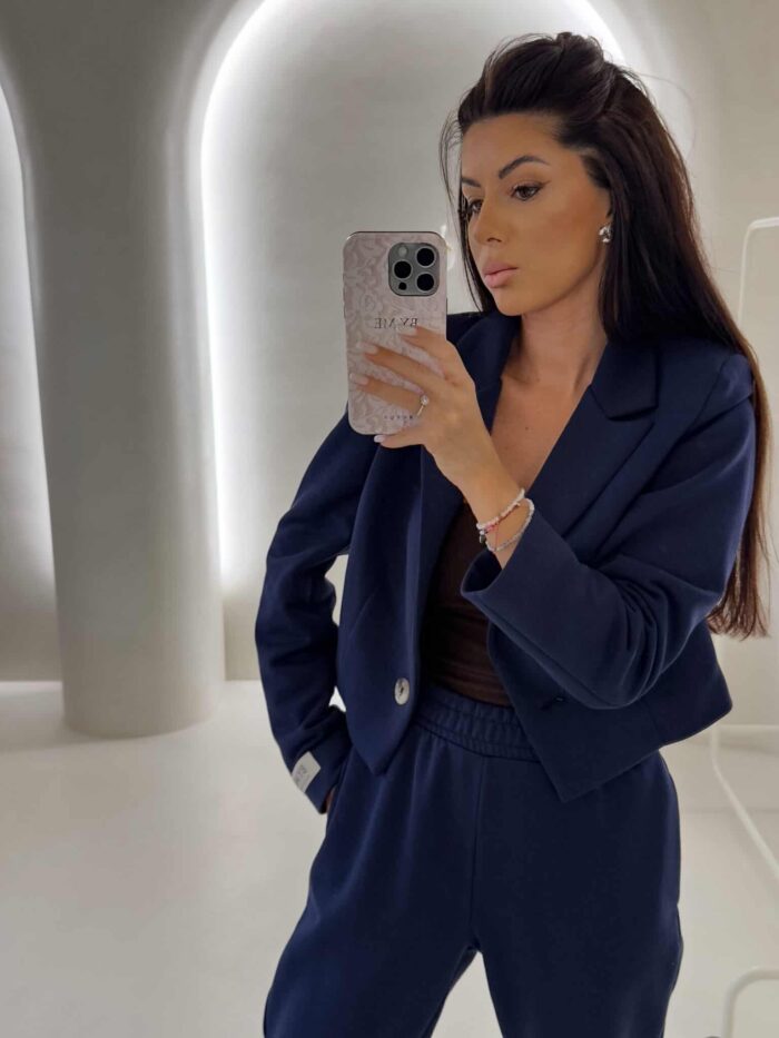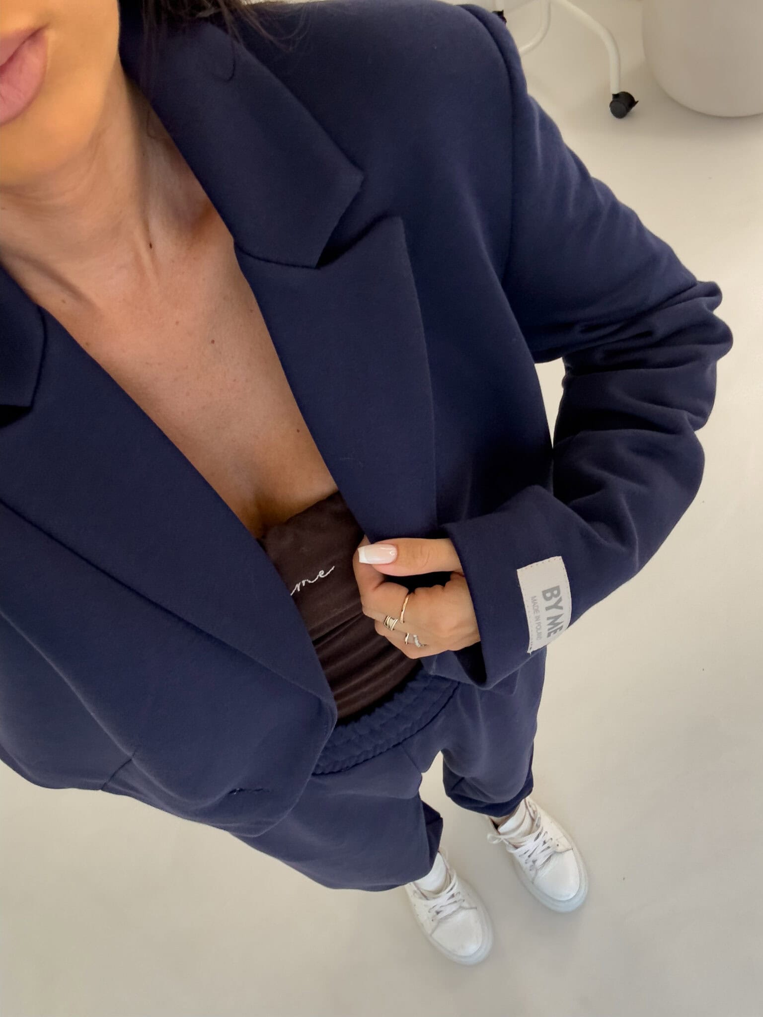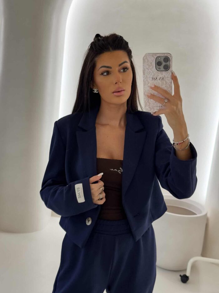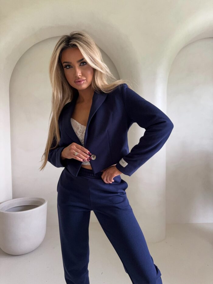 Marynarka o krótkim kroju, gładkie wykończenie. Marynarka posiada podszewkę, zapięcie regulowane przy pomocy guzika.