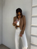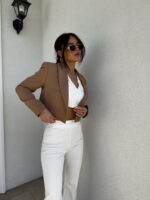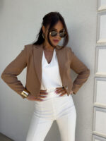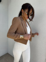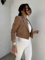 Marynarka o krótkim kroju, gładkie wykończenie. Marynarka posiada podszewkę, zapięcie regulowane przy pomocy guzika.