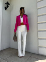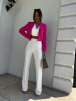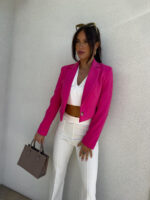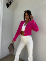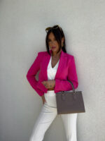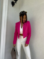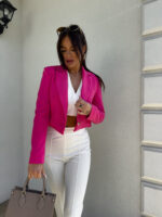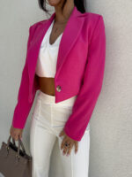 Marynarka o krótkim kroju, gładkie wykończenie. Marynarka posiada podszewkę, zapięcie regulowane przy pomocy guzika.